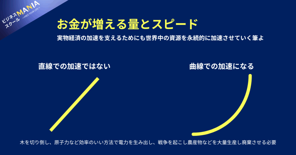 お金の増える量は直線ではなく、曲線で時間経過と共に増える量が加速します。