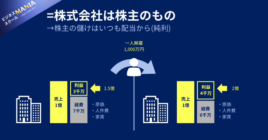 つまり会社の目的は、社員の給料を上げることではなく、株主の利益を増やすこと。